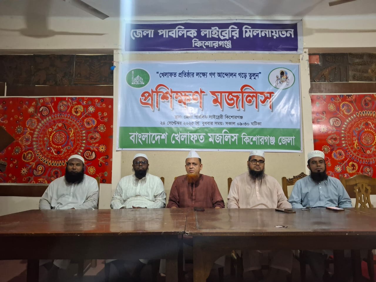 বাংলাদেশ খেলাফত মজলিস কিশোরগঞ্জ জেলা শাখার উদ্যোগে একটি প্রশিক্ষণ মজলিস অনুষ্ঠিত হয়েছে। শনিবার (তারিখ উল্লেখযোগ্য) সকালে জেলা শহরের পাবলিক লাইব্রেরি মিলনায়তনে এ মজলিসের আয়োজন করা হয়।