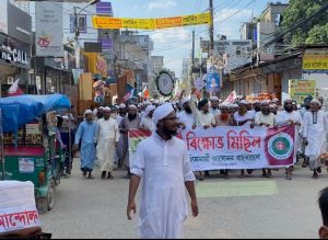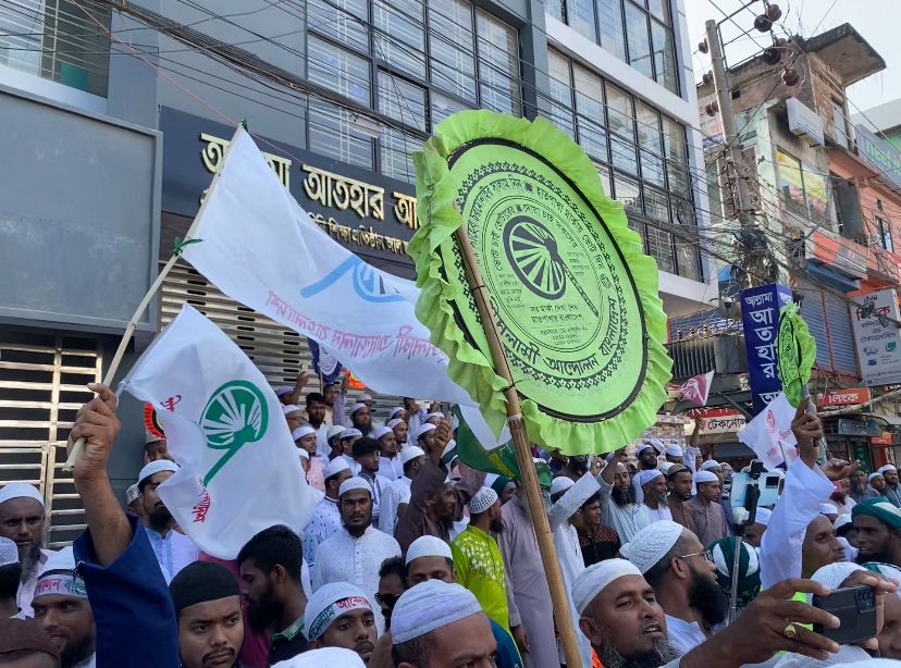 আগামী জাতীয় সংসদ নির্বাচনে পিআর পদ্ধতির প্রবর্তন, নির্বাচন সংস্কার, জাতীয় পার্টিসহ ১৪ দলের রাজনীতি নিষিদ্ধকরণসহ ৫ দফা দাবিতে আজ শুক্রবার (২৬ সেপ্টেম্বর ২০২৫ ইং) জুমার নামাজের পর ঐতিহাসিক শহীদী মসজিদের চত্বর থেকে বিশাল বিক্ষোভ মিছিল শুরু হয়। মিছিলটি শহরের বিভিন্ন সড়ক প্রদক্ষিণ করে পুরানথানা মোড়ে এসে শেষ হয়।