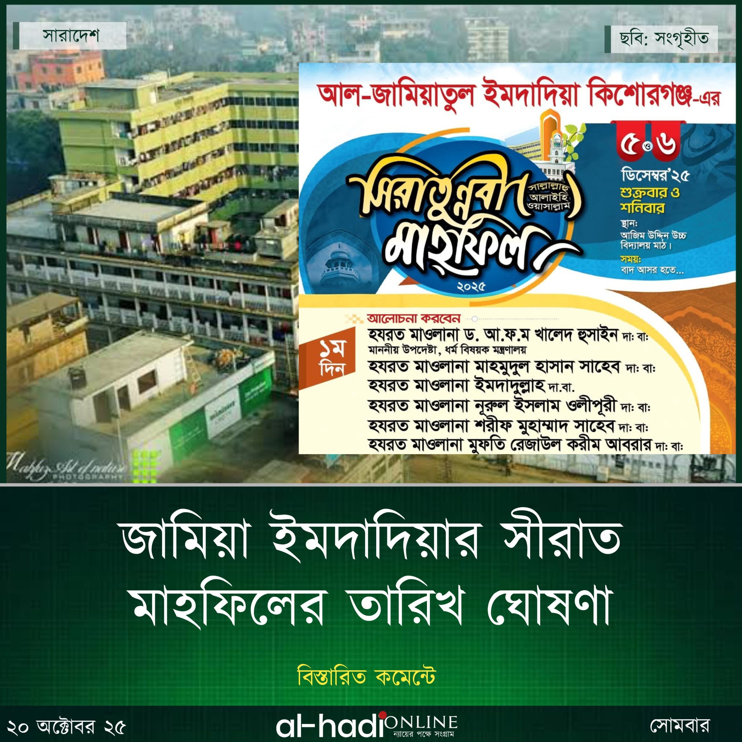 জানা যায়, আগত ডিসেম্বর মাসের ৫ এবং ৬ তারিখ, ২০২৫ ঈসায়ী, রোজ শুক্র ও শনিবার প্রত্যহ বাদ আসর হতে অনুষ্ঠিত হবে।